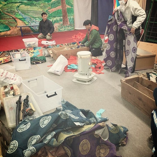 先日お神楽の衣装直しがありました。旧暦正月が明けたあたりに、1年使った衣装や小物の修繕を団員でします。こうして何年も何年も引き継いでいるのって、素敵☆